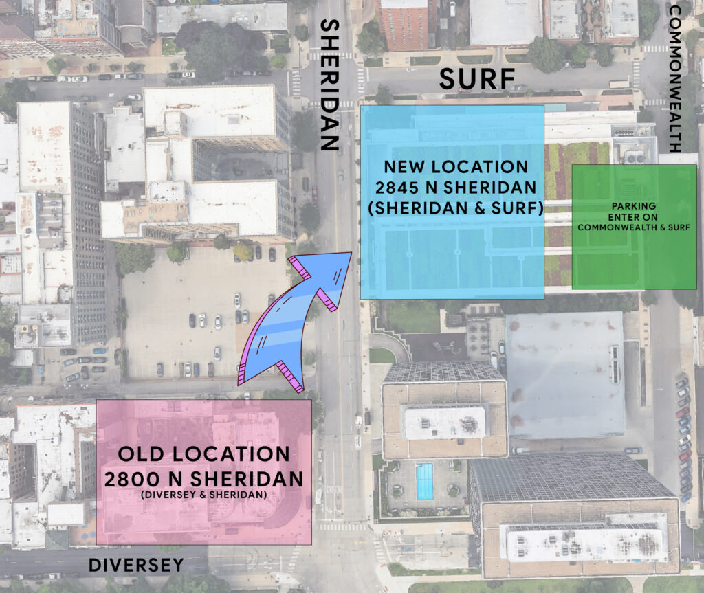 We are located in Lincoln Park (Near Lincoln Park Zoo) at the corner of Diversey and Sheridan.